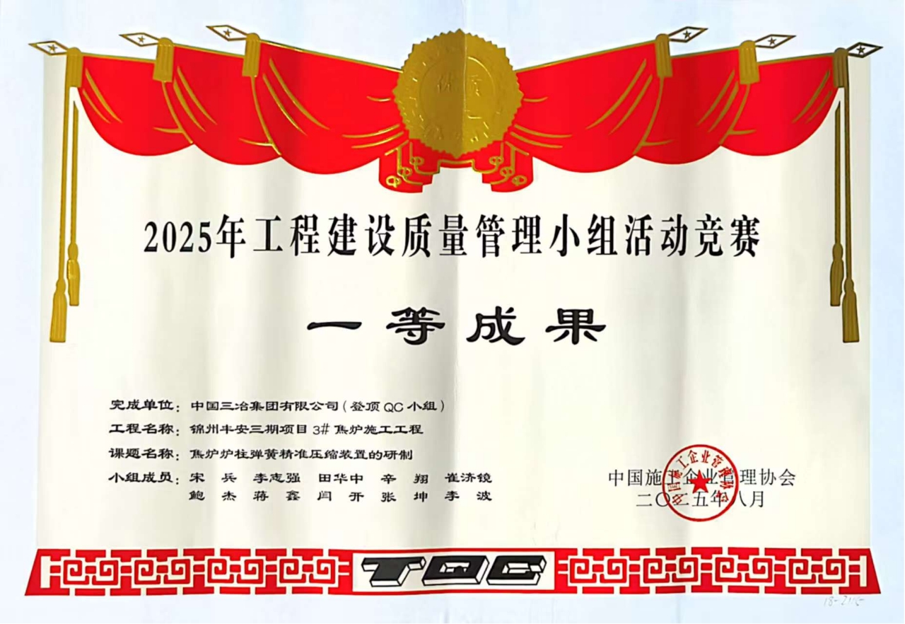 近日,2025年度國家級QC成果大賽圓滿落幕,中國三冶憑借扎實的質(zhì)量管理實踐與突破性創(chuàng)新成果,在兩項國家級賽事中斬獲佳績。其中,在中建協(xié)成果大賽中,一舉摘得一等獎2項、二等獎8項;在中施企協(xié)賽事中,贏得一等獎2項、二等獎1項。這份成績單的背后,是中國三冶質(zhì)量管理水平從"量的積累"到"質(zhì)的飛躍"的生動印證,更是三冶人踐行“自主創(chuàng)新的引領(lǐng)作用”,以“問題導向的工作思維”突破行業(yè)瓶頸的縮影。